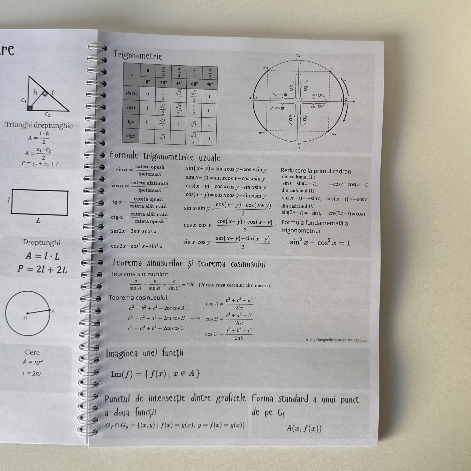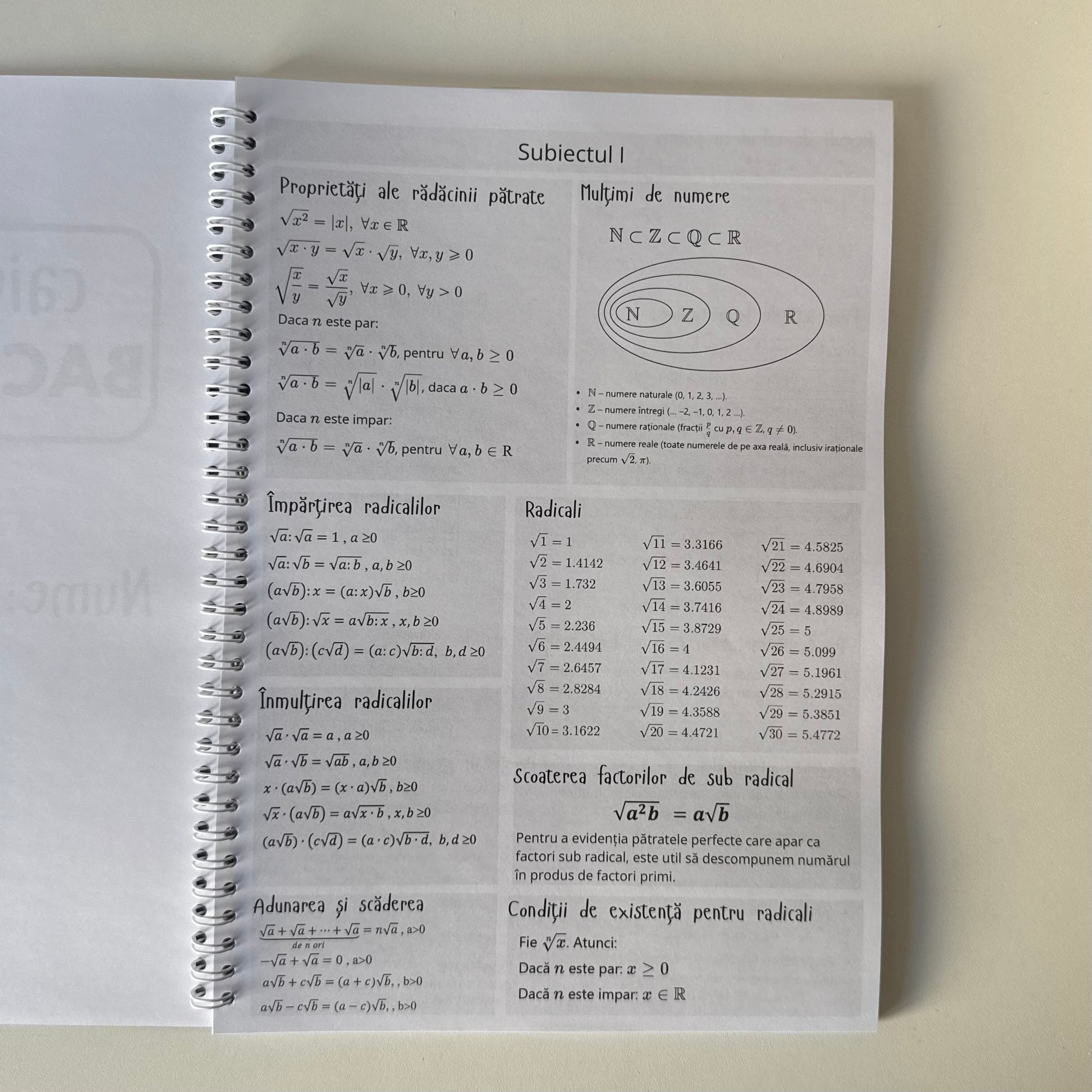 📘 18 pagini de formule esențiale – toate grupate clar pe cele 3 subiecte de la Bacalaureat, astfel încât informația să fie mereu la îndemână.
