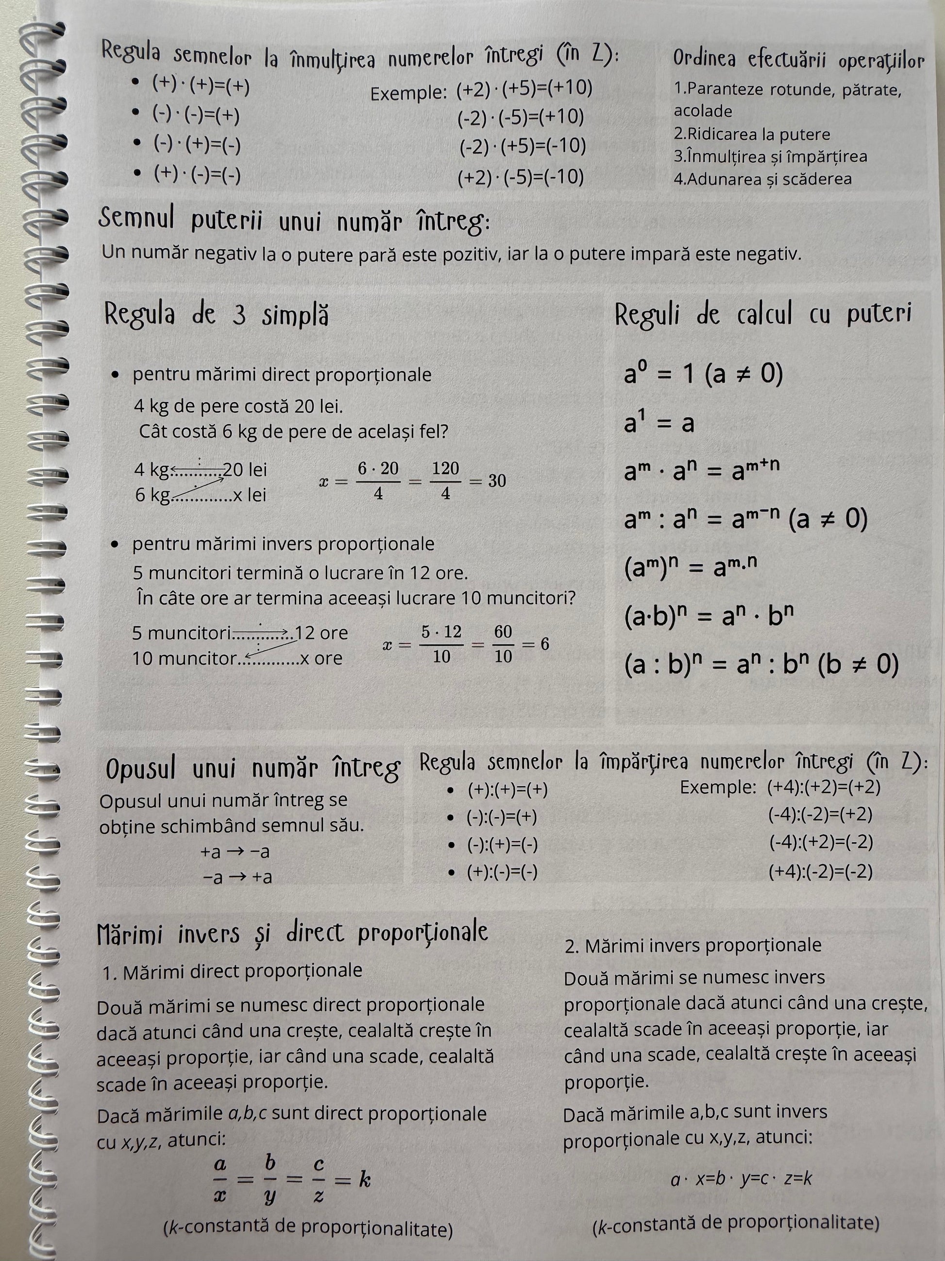 💡 Formule de bază – 6 pagini compacte cu tot ce ai nevoie pentru algebră și geometrie în clasa a VI-a.
