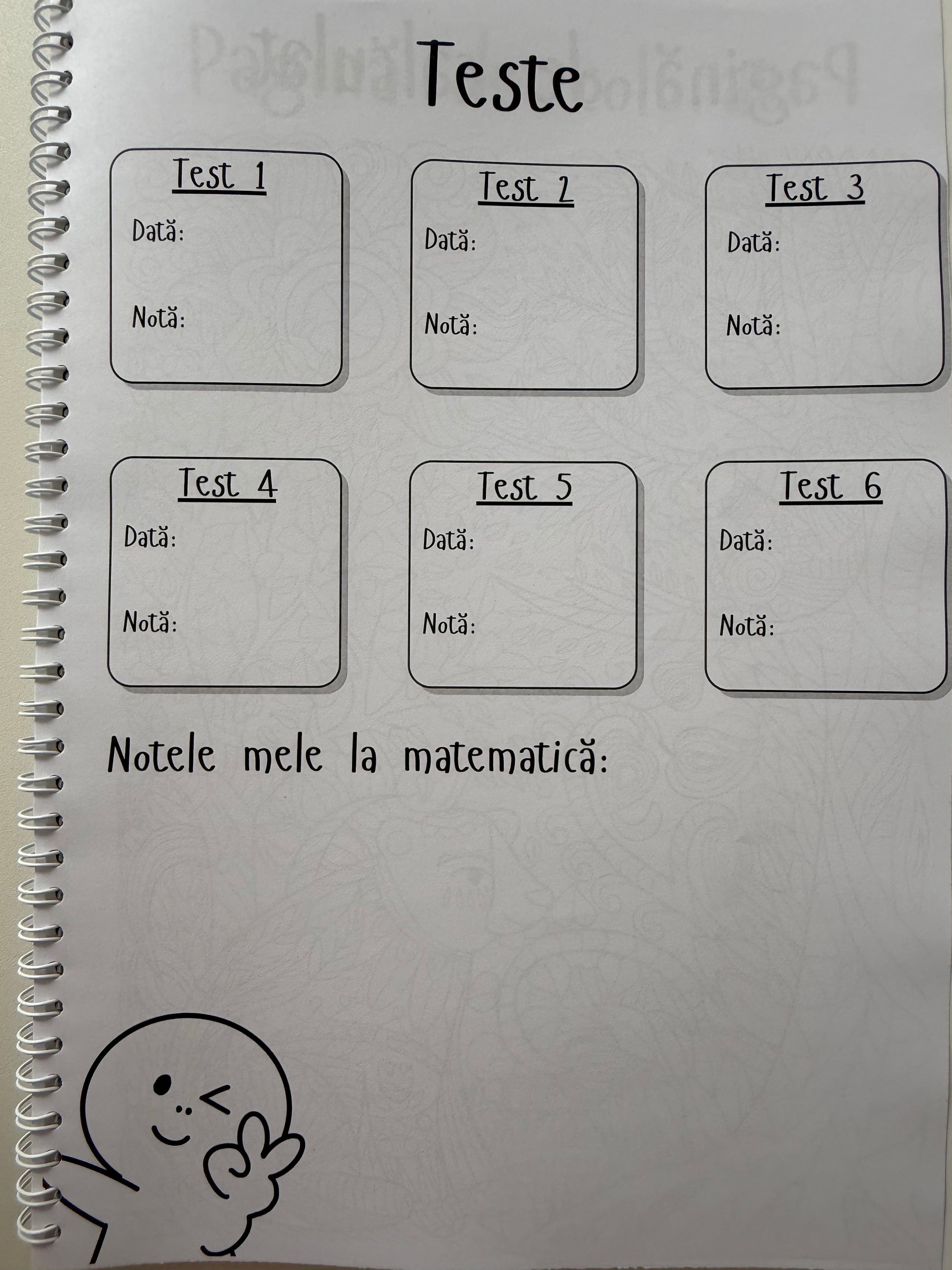 📆 Planner pentru teste – o pagină unde poți trece datele și notele testelor, pentru a urmări progresul cu ușurință.
