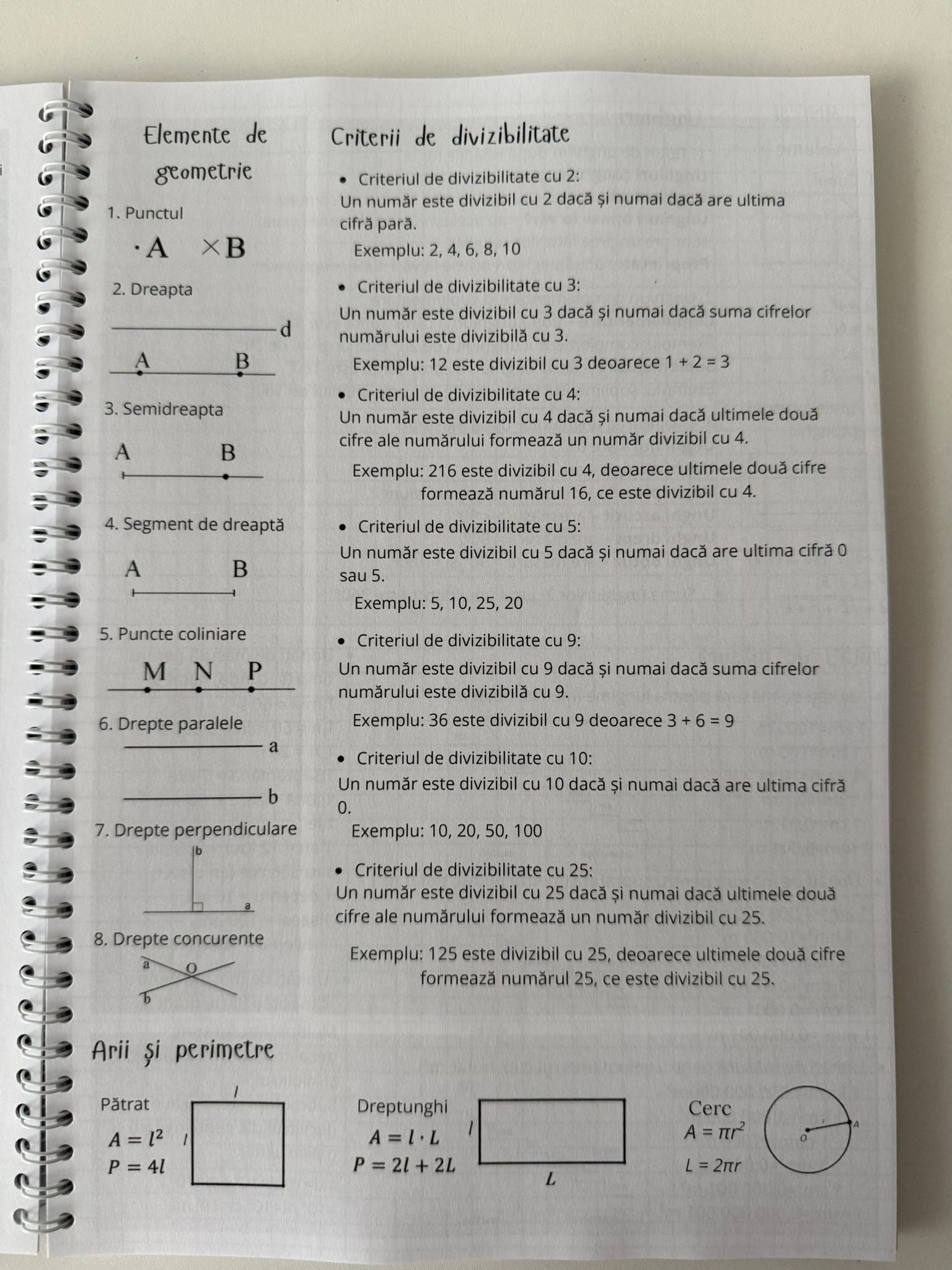 💡 Formule de bază – 4 pagini compacte cu tot ce ai nevoie pentru algebră și geometrie în clasa a V-a.